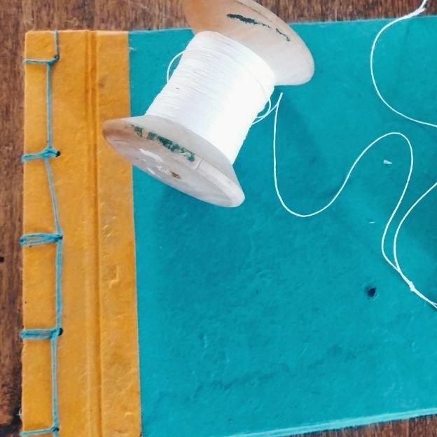 Atelier libre ouvert par Catherine qui pratique la reliure japonaise.