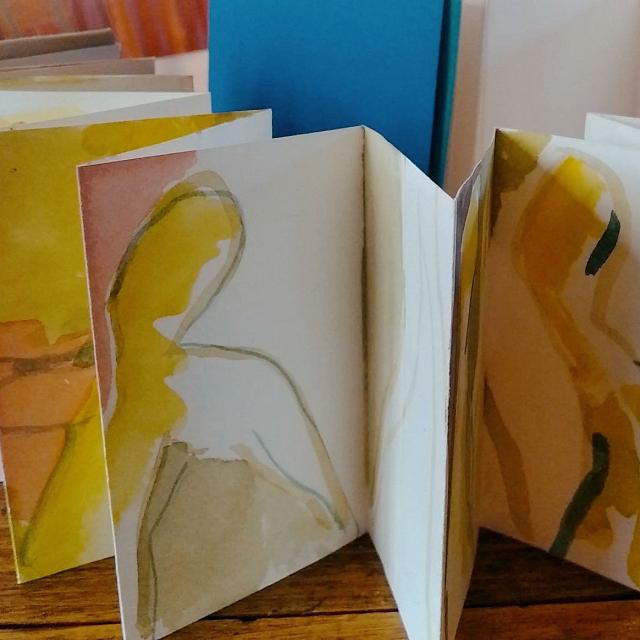 Atelier libre ouvert par Catherine qui propose de découvrir la reliure origami sans couture ni colle, juste un jeu de pliage et dépliage.