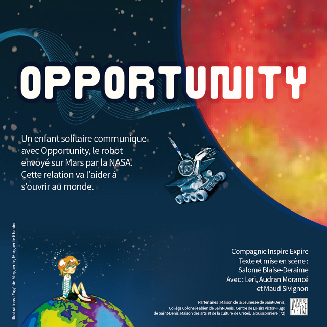 La Buissonnière a le plaisir d’accueillir en avril la jeune compagnie de théâtre Inspire Expire. À l’occasion de leur sortie de résidence, vous êtes invité·e·s le vendredi 11 avril à 16:30 à découvrir leur création jeune public intitulée "Opportunity", à voir en famille à partir de 7 ans.