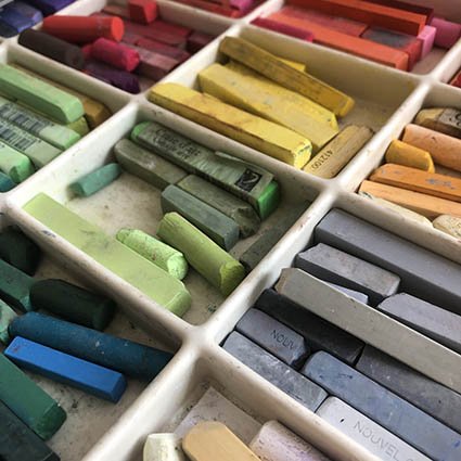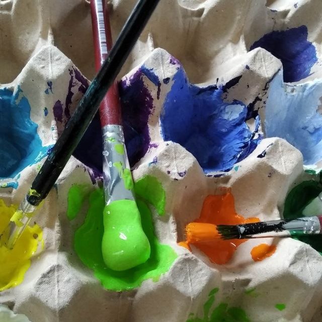 Le matériel est à disposition sur place : peinture, pastels, papiers, supports, récup...