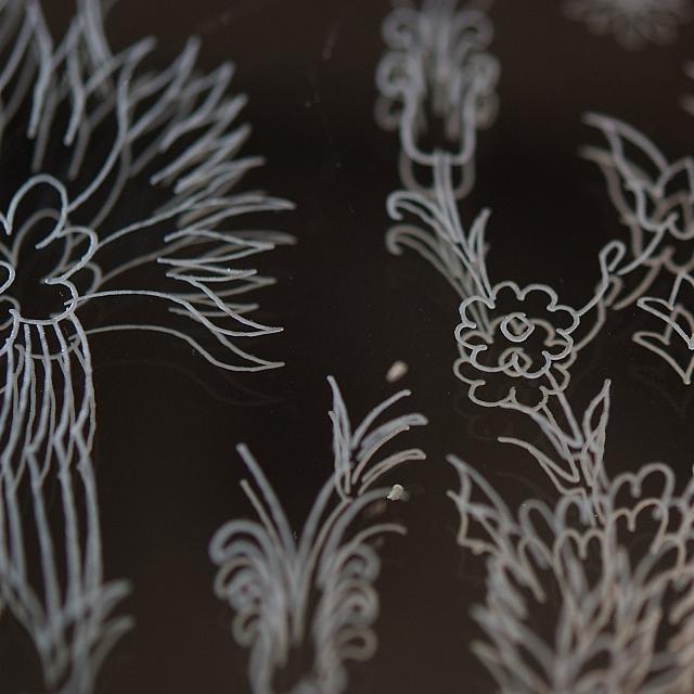Julia R. propose un atelier de gravure sur verre, prise en main d’un stylet de gravure et réalisation d’un décor sur une plaque de miroir.