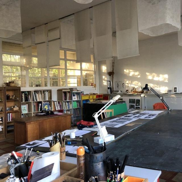 Espace d’expérimentation, de recherche et d’échange autour de l’estampe (gravure sur carton aluminisé, monotype…).