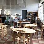 Buvette et restauration du bric-à-brac dans la cour de l’atelier.
